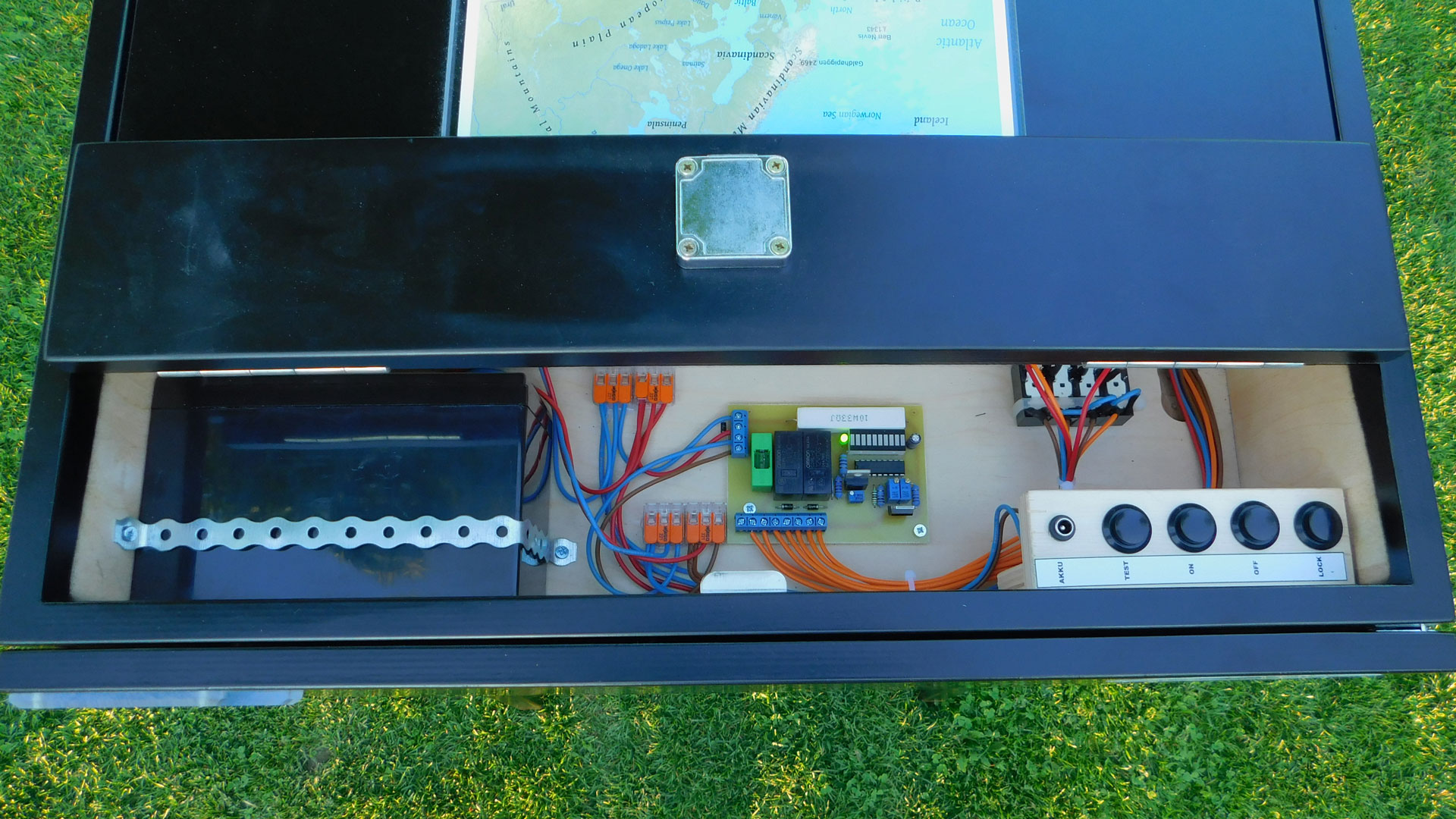The game boxes installed can be replaced as needed, they are freely variable. The game boxes feature an external power connector beside the integrated battery. Due to this, the game boxes can be installed to a fixed location with an external power supply which provides 100% battery charge continuously, thus they are readily available in case of external event deployment. Every game box is provided with a battery charger.